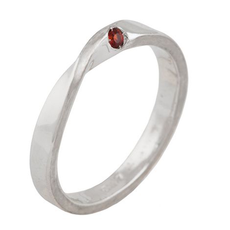 Anel em prata com banho de rodio, 1 pedra redonda de 2 mm. Acabamento polido e fosco.