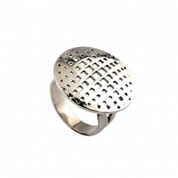 Anel em prata com banho de rodio. Acabamento polido.