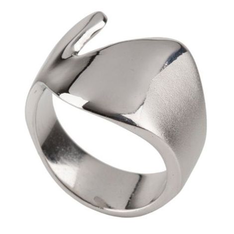 Anel em prata com banho de rodio. Acabamento polido e foco.