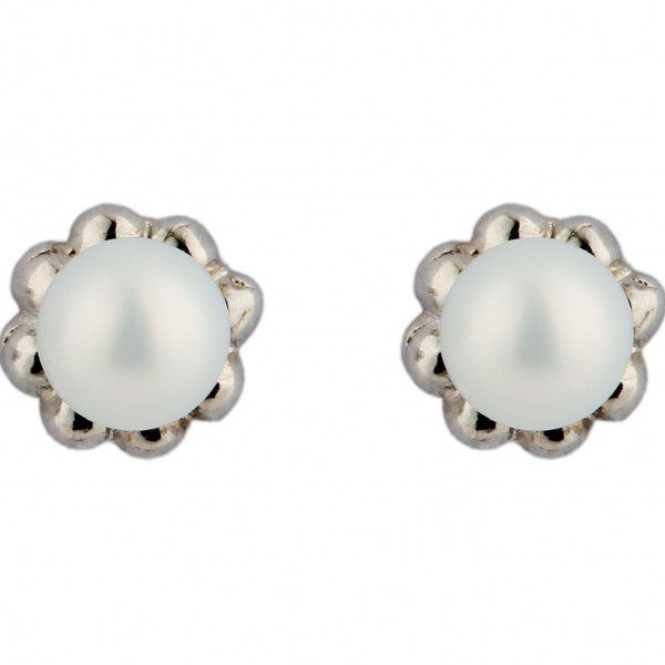 Brinco em prata com banho de rodio, dimensões diâmetro 0,5 cm e 2 pérolas redondas brancas de 4 mm. Acabamento polido.