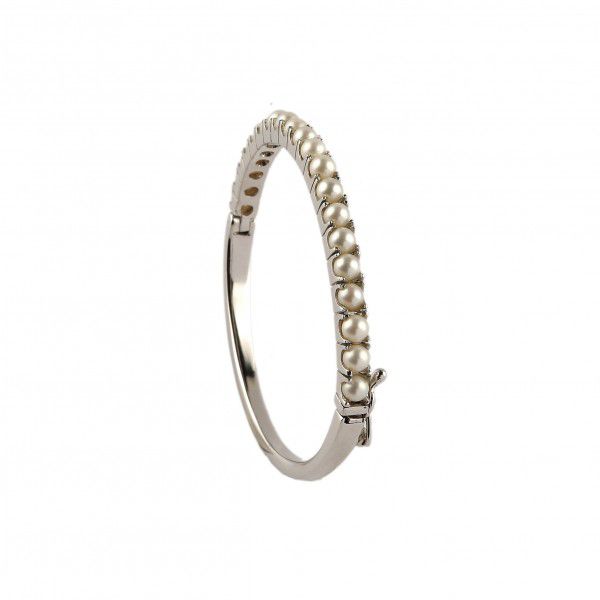 Pulseira em prata com banho de rodio, 20 pérolas redondas de 4 mm. Acbamento polido.